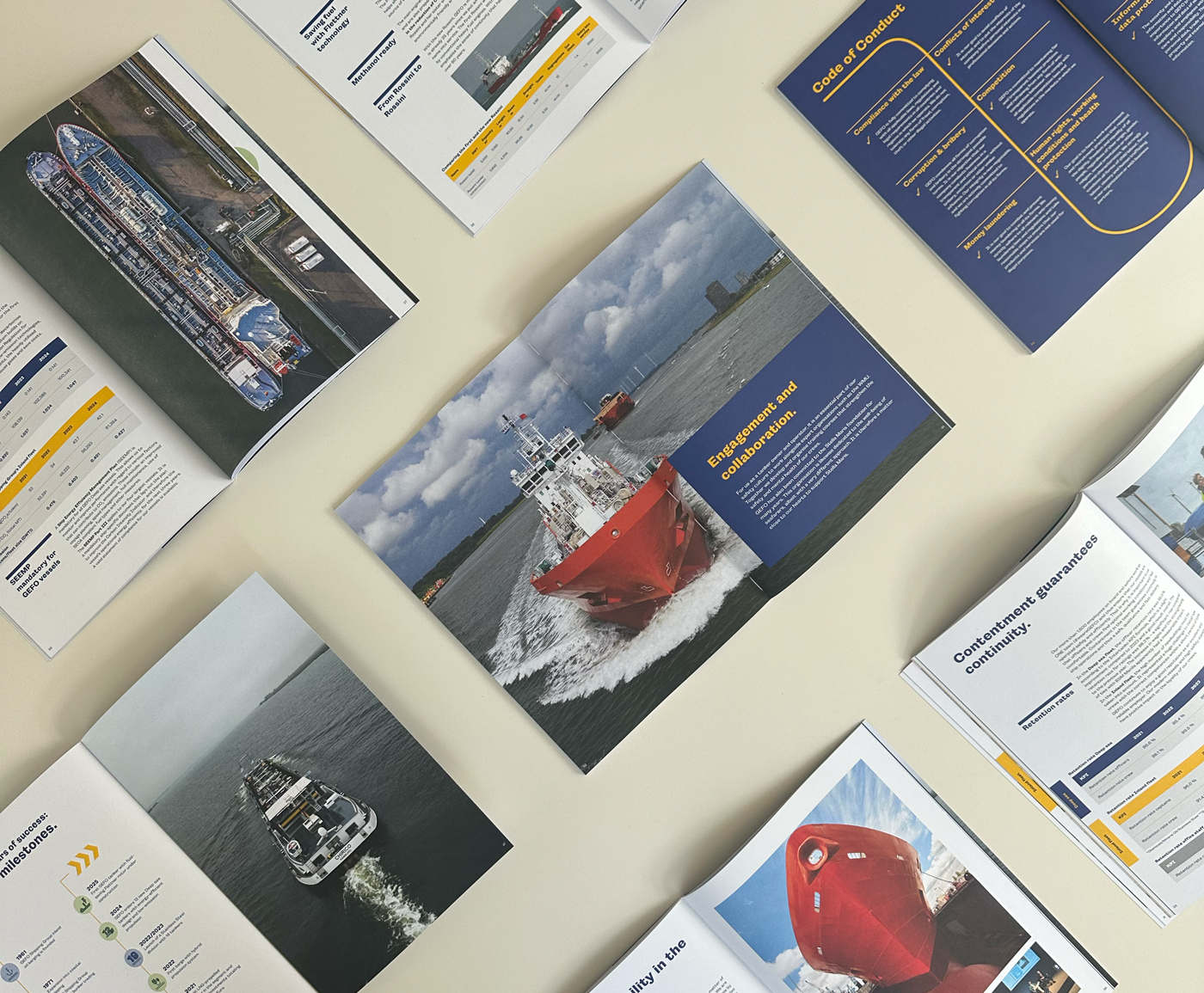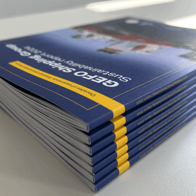 DRID entwickelt die Nachhaltigkeitsbroschüren der GEFO, die sich an die internationalen Kunden und weitere Stakeholder der Reederei richten. Auf 48 Seiten informieren wir über die erfolgreichen Initiativen der GEFO für mehr Nachhaltigkeit und emissionssparende Technologien in der Schifffahrt. Auch weitere Aspekte wie Umweltschutz, Compliance, Unfallsicherheit, Auszeichnungen und die Zufriedenheit der Crew stehen im Fokus. Selbstverständlich werden die Broschüren klimaneutral und auf hochwertigem Recyclingpapier gedruckt.